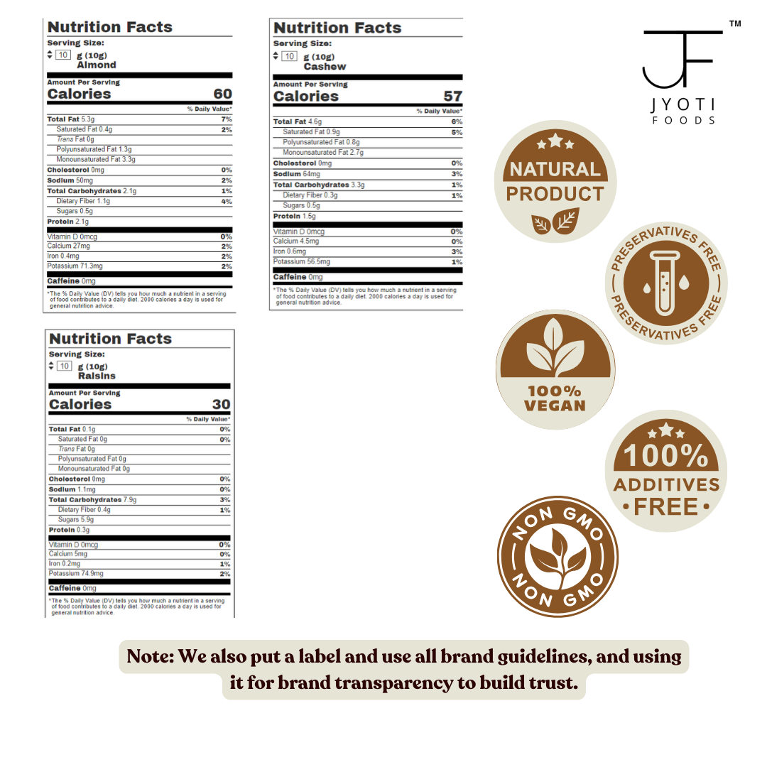 Make every celebration extra special with Jyoti Foods’ Premium Pack of 3 Dry Fruits. A thoughtful hamper filled with Almonds, Cashews, and Raisins, this box is the perfect mix of nutrition, taste, and festive charm.